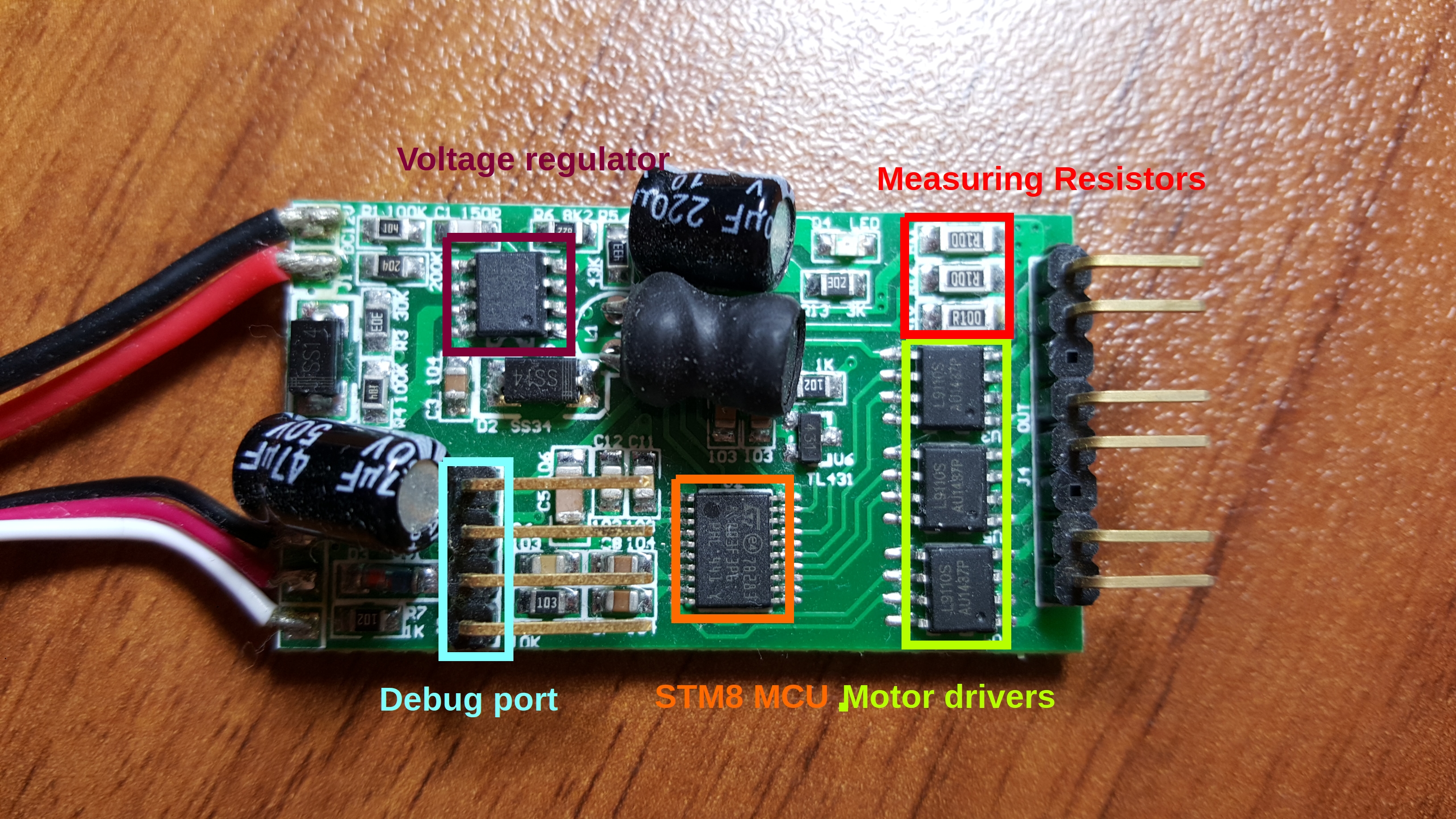 Now, as you can see, this is the final drawing of the PCB after I examined every part of it. The main stuff is the MCU (obviously), the three L9110 motor drivers that actually drive the connected retracts, and measuring resistors, which are used to measure consumption of the retract motors and stop them (when they can’t move anymore, and start drawing more power).